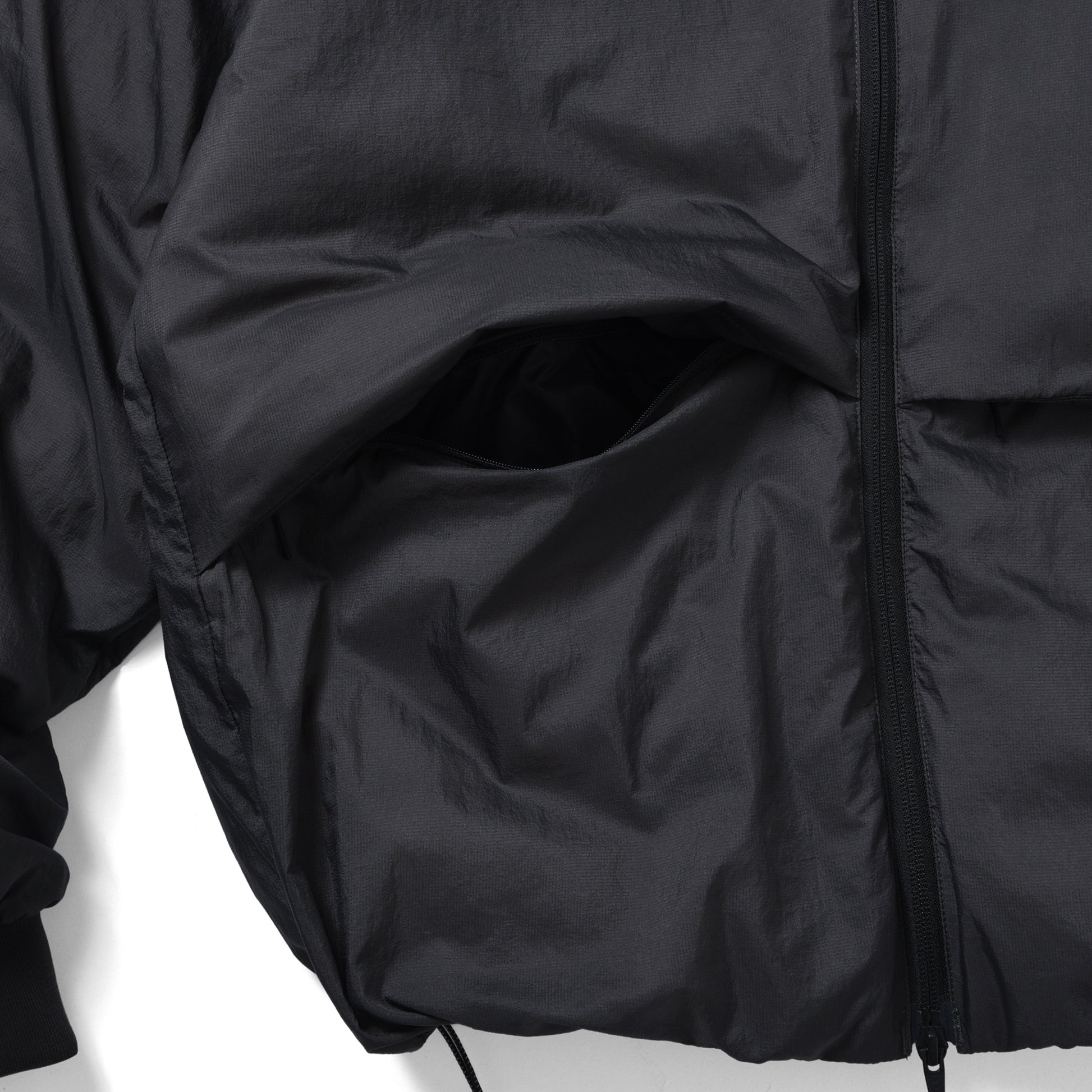中わたには 800FLPのホワイトダックダウンを充填。裏地は通常の高密タフタより柔らかく、ぬめり感の風合いと高級な表面感が特徴です。