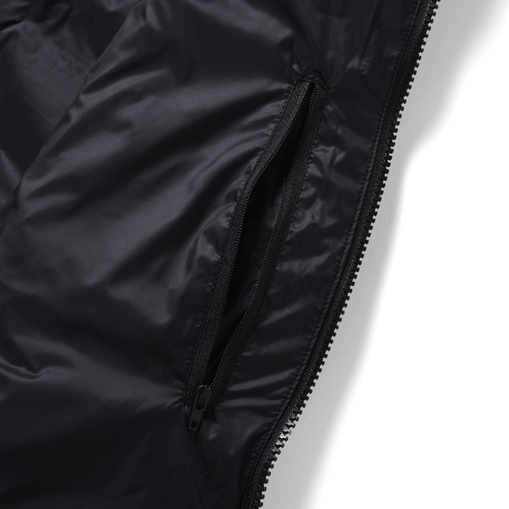 中わたには 800FLPのホワイトダックダウンを充填。裏地は通常の高密タフタより柔らかく、ぬめり感の風合いと高級な表面感が特徴です。