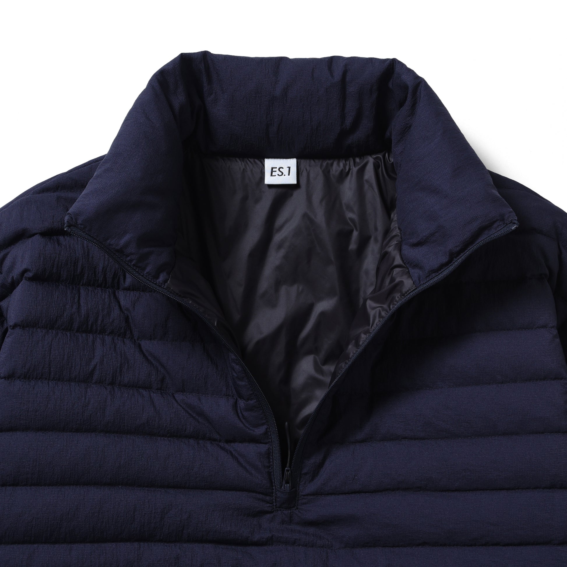 ドライタッチな表面感と軽さが特徴の表地を使用した 、インナーとしても使えるハーフジップのダウンセーター。