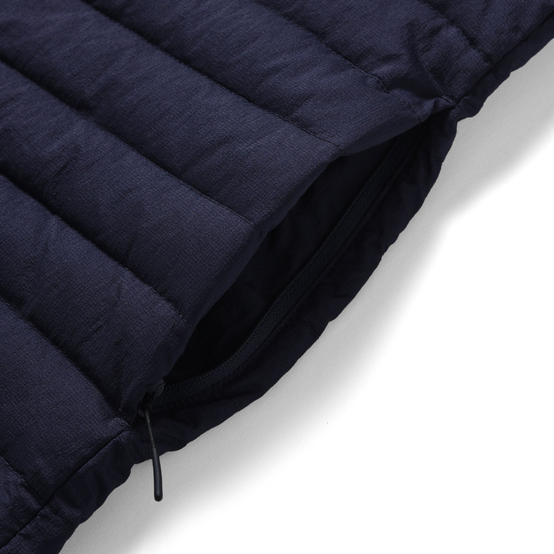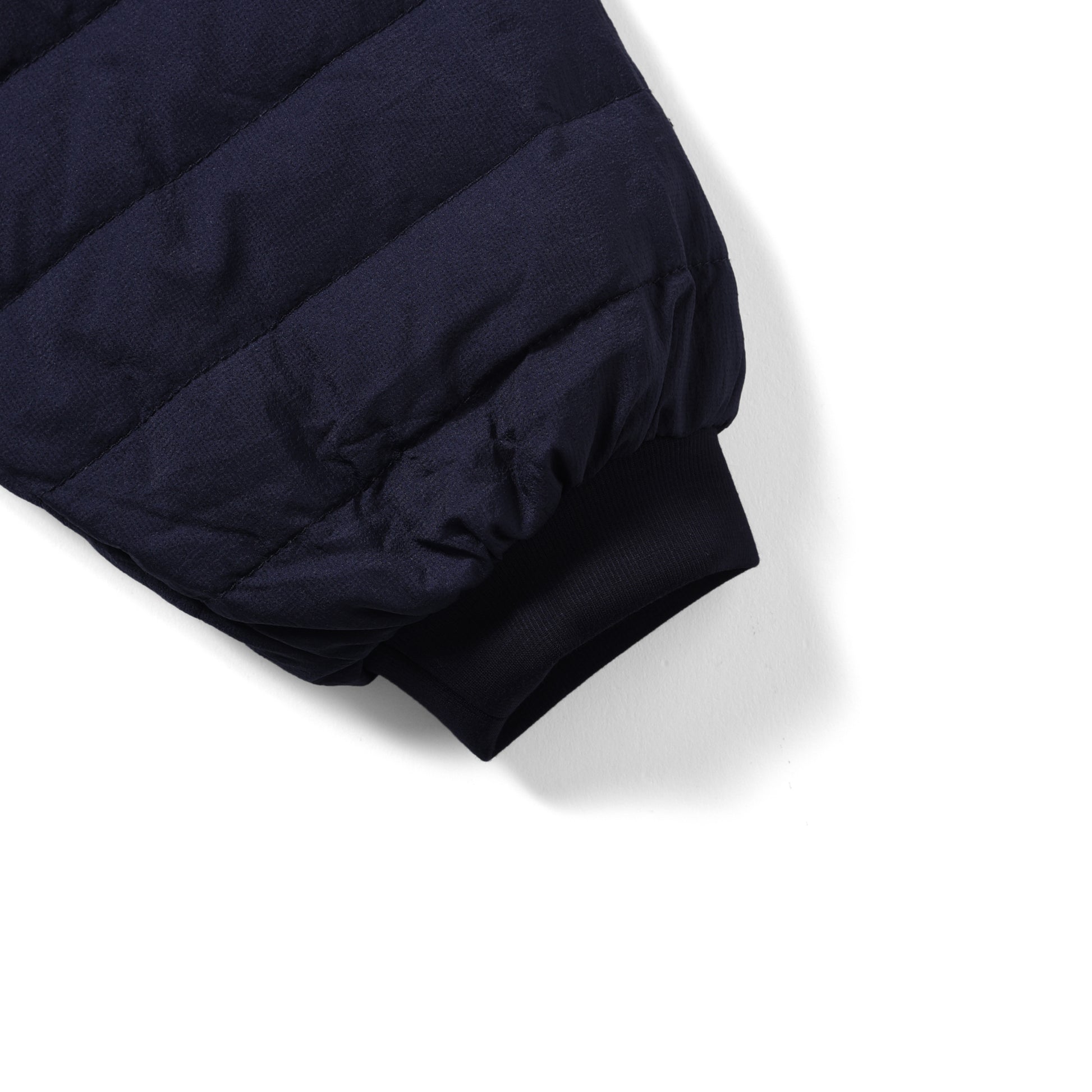 中わたには 800FLPのホワイトダックダウンを充填。裏地は通常の高密タフタより柔らかく、ぬめり感の風合いと高級な表面感が特徴です。